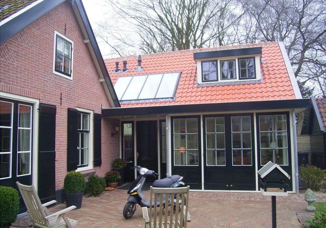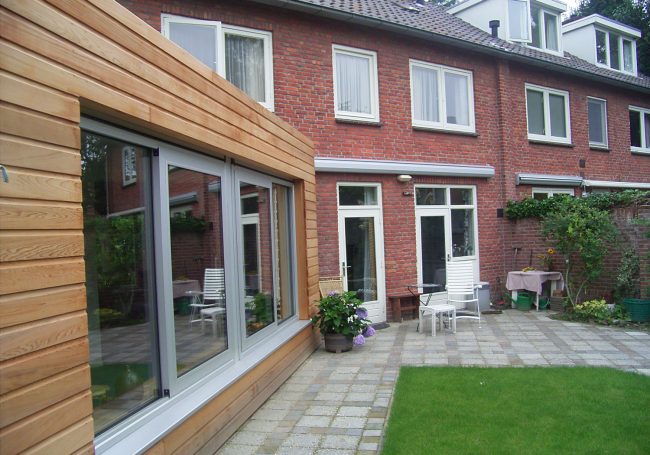 Meer dan verdubbeling woonruimte van bestaand woonhuis. Bijzonderheden: gehele uitbouw is onderkelderd. Uitgevoerd in houten rabatdelen om authentieke karakter van bestaand woonhuis in stand te houden.